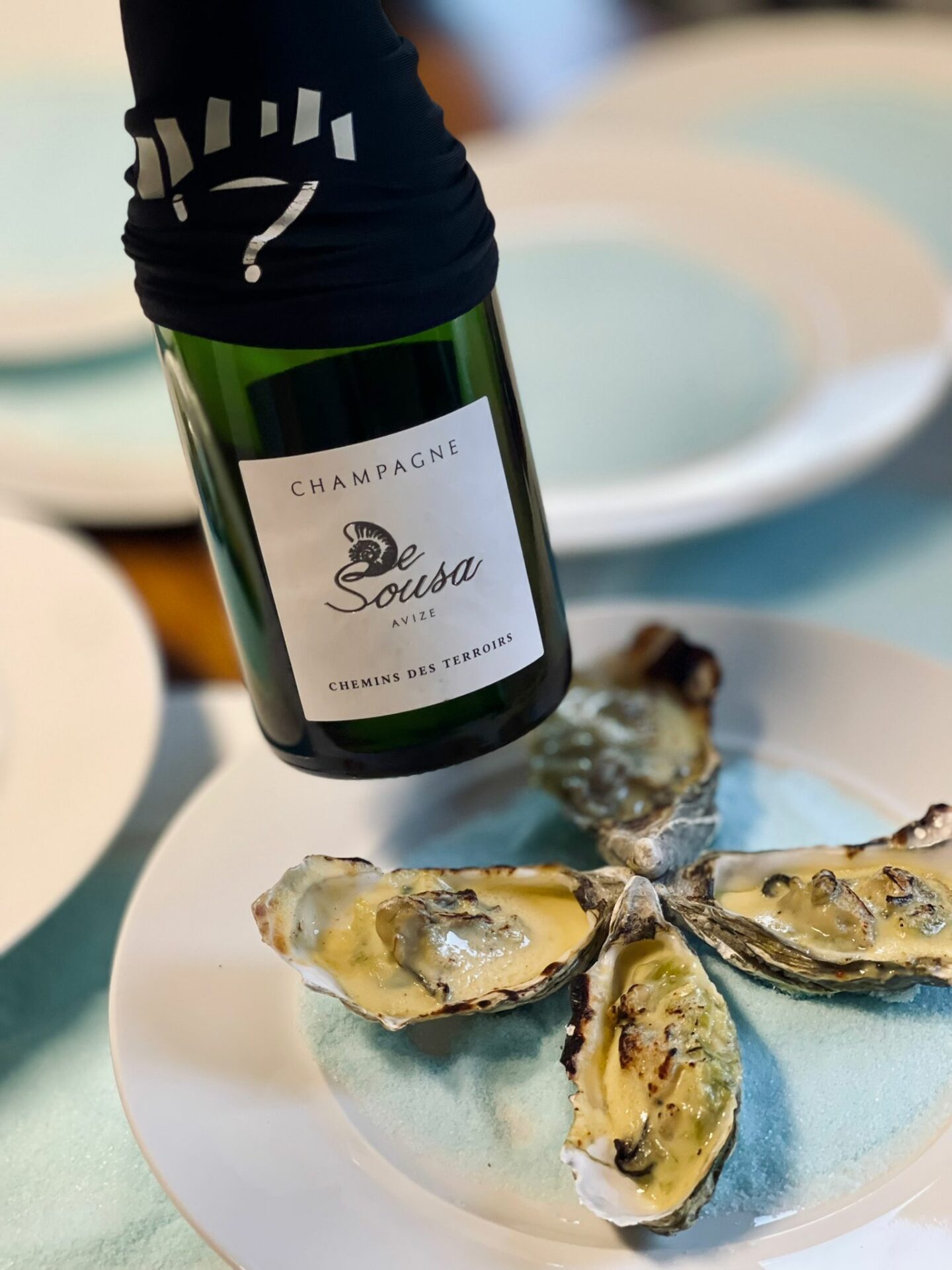 ➡️ Avec des huîtres gratinées au champagne… tout simplement divin !
