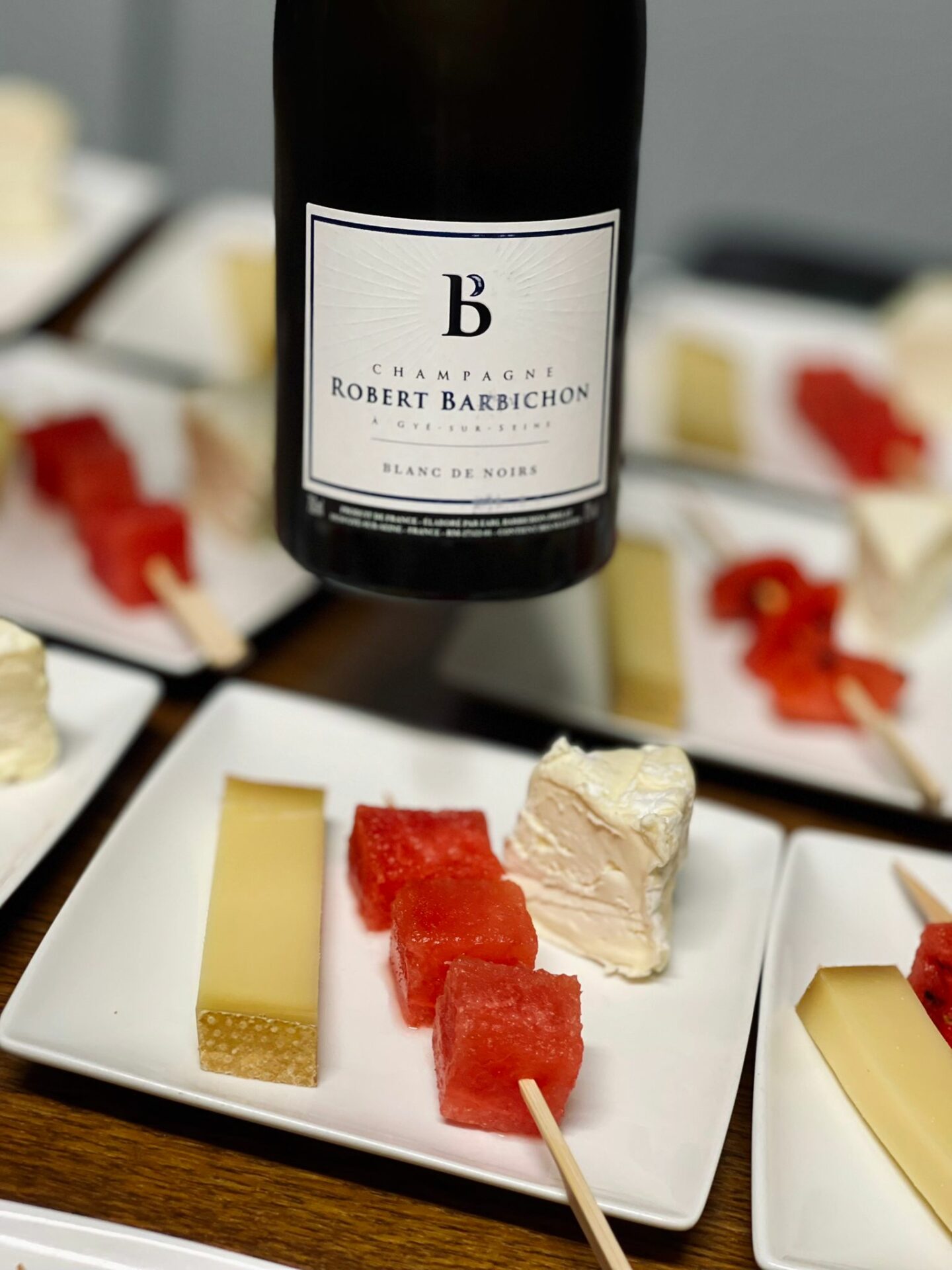 ➡️ Avec une assiette de fromages : Chaource, Comté affiné 18 mois et brochette de pastèque – surprenant et parfaitement équilibré !