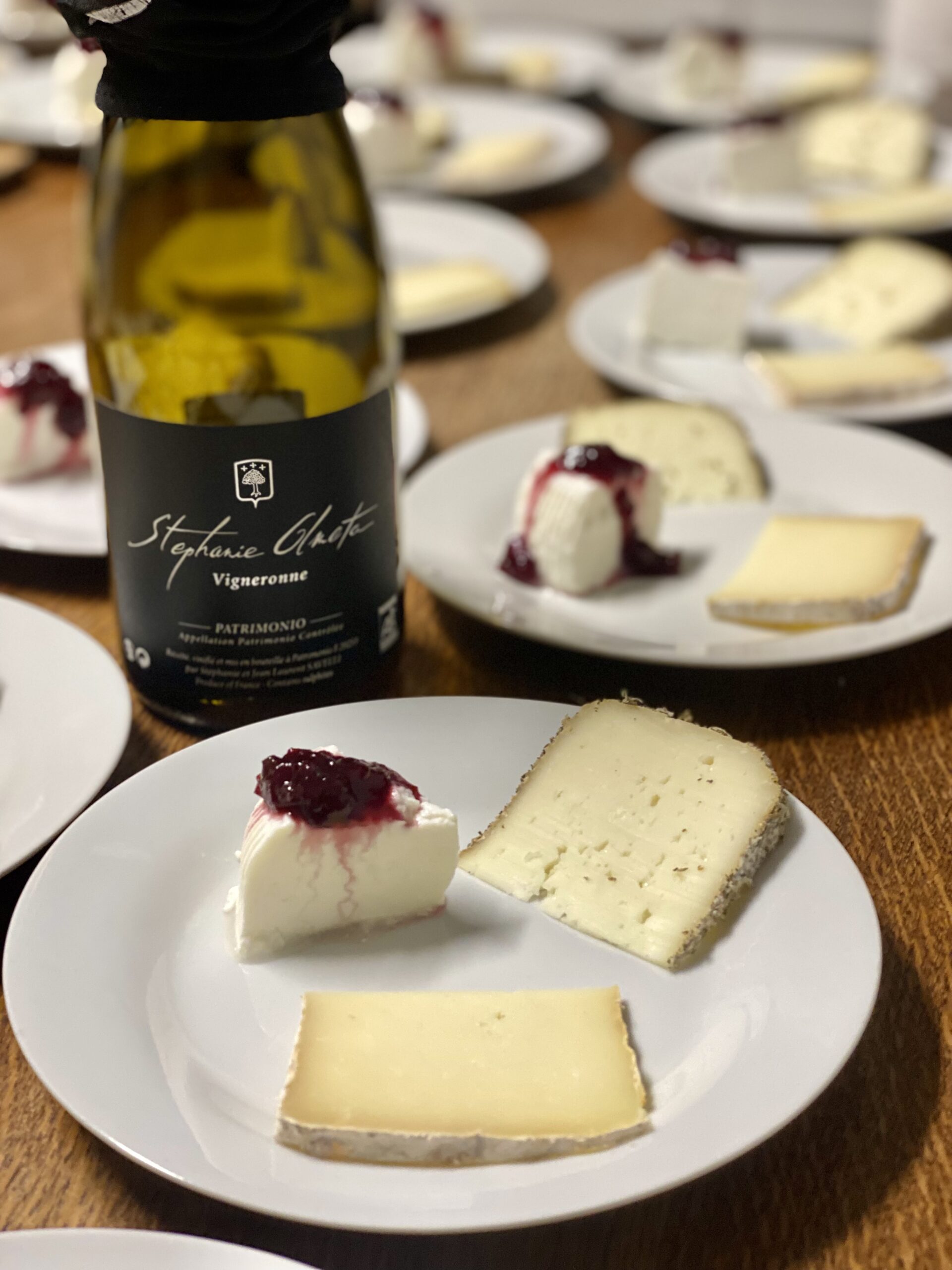 AOP Patrimonio 2020, Domaine Stéphanie Olmeta, accordé avec une assiette 3 fromages : tome du maquis, Brousse et tome de brebis.