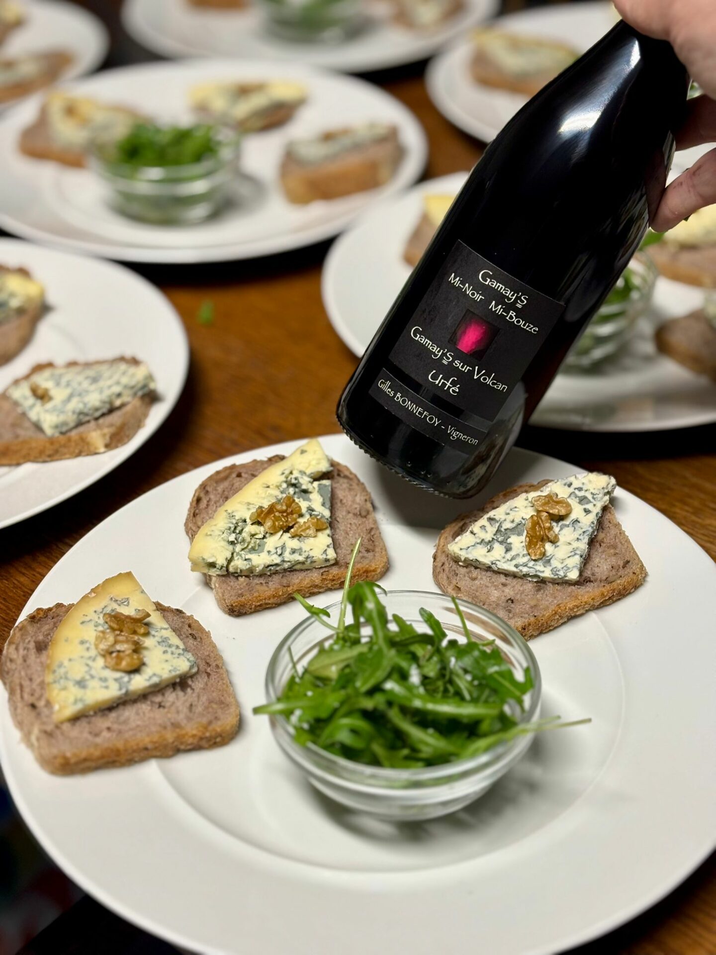 Gamay’s 2024, IGP Urfé, Les vins de la Madone – Gilles Bonnefoy, accompagné de trois fourmes : Montbrison, Ambert et Yssingeaux.